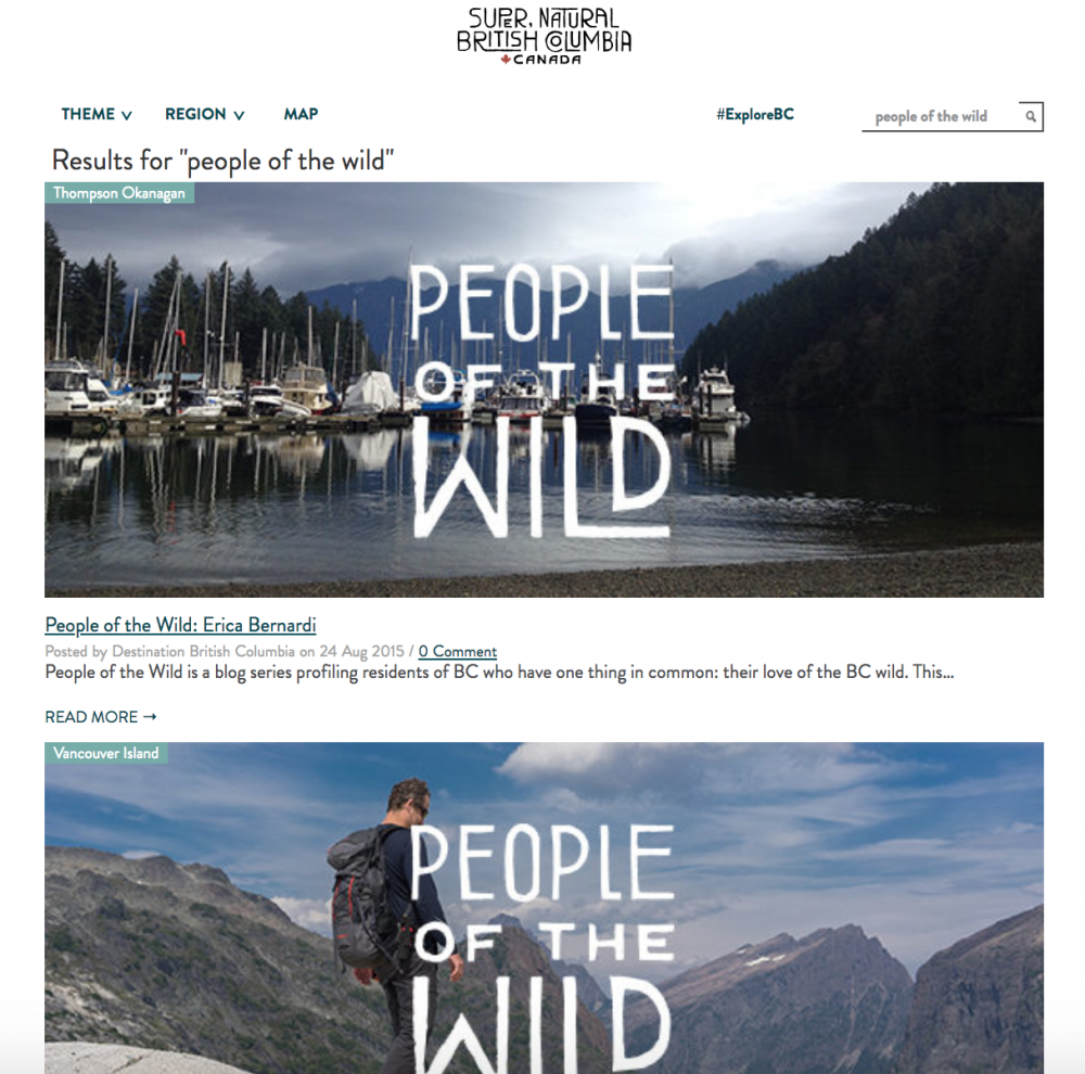 Over the course of a summer, Destination Think worked with Destination British Columbia to produce the People of the Wild blogs. This series provided visitors with trip planning information and advice by publishing personal stories and education about the diversity of the province. The series can be repurposed as social media posts to inspire travel, but it’s also a convenient place for people who find these local stories and interviews captivating.